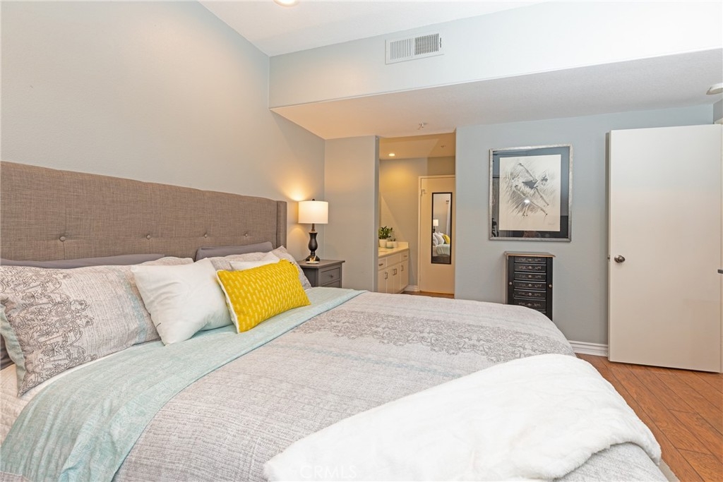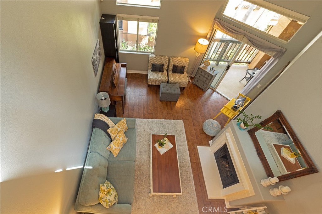 Welcome to Rancho Veracruz in Tustin! This highly sought after floor plan with GARAGE has a prime mid tract location which looks out over the green belt. The DOWNSTAIRS large bedroom has its own sliding glass door to the private patio. The bathroom features a vanity area with closet, separate from the shower and toilet area, excellent for working couples. Upstairs, is a LARGE LOFT area with closet, a wonderful flex space for an additional bedroom, office, or? The laundry closet is located conveniently inside, with a new washer and dryer. This home comes with White cabinetry throughout and new flooring. This truly modern home has electric shades on the skylight and otherwise inaccessible window, and the fireplace lights with the flip of a switch! Rancho Vera Cruz is situated close to neighborhood parks, shopping and has easy freeway access.