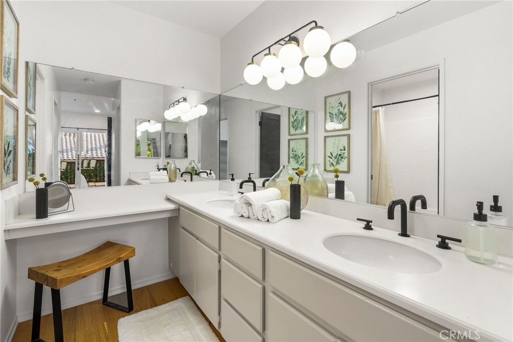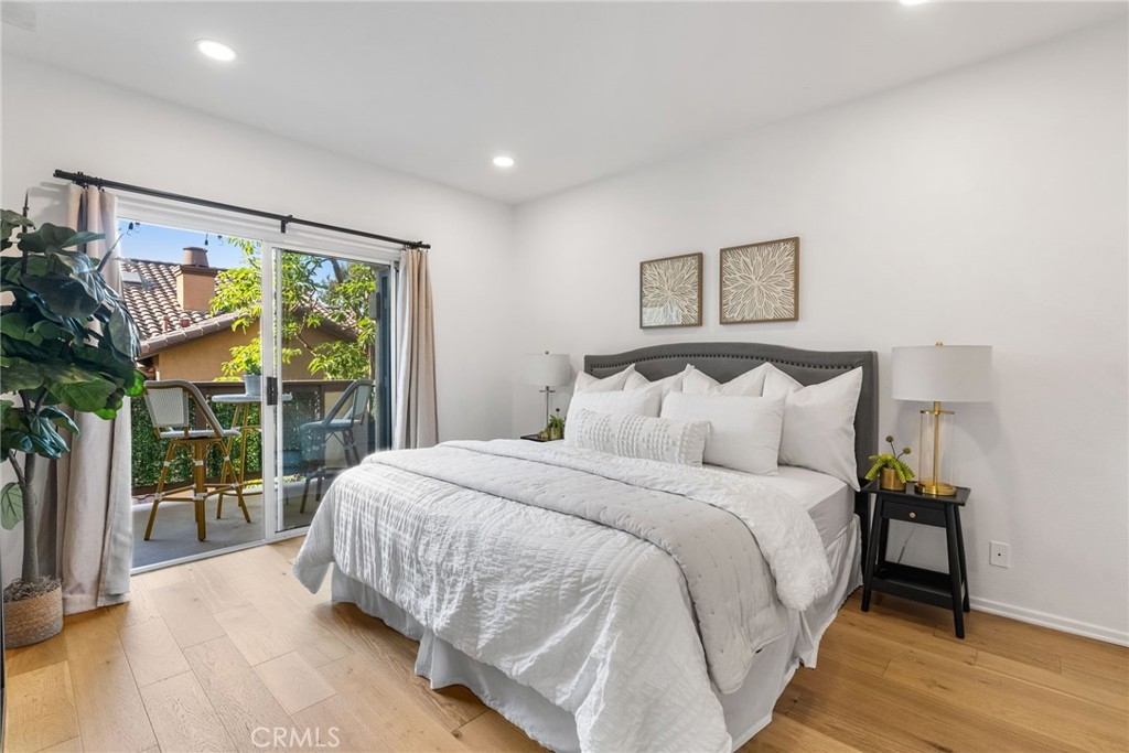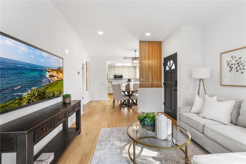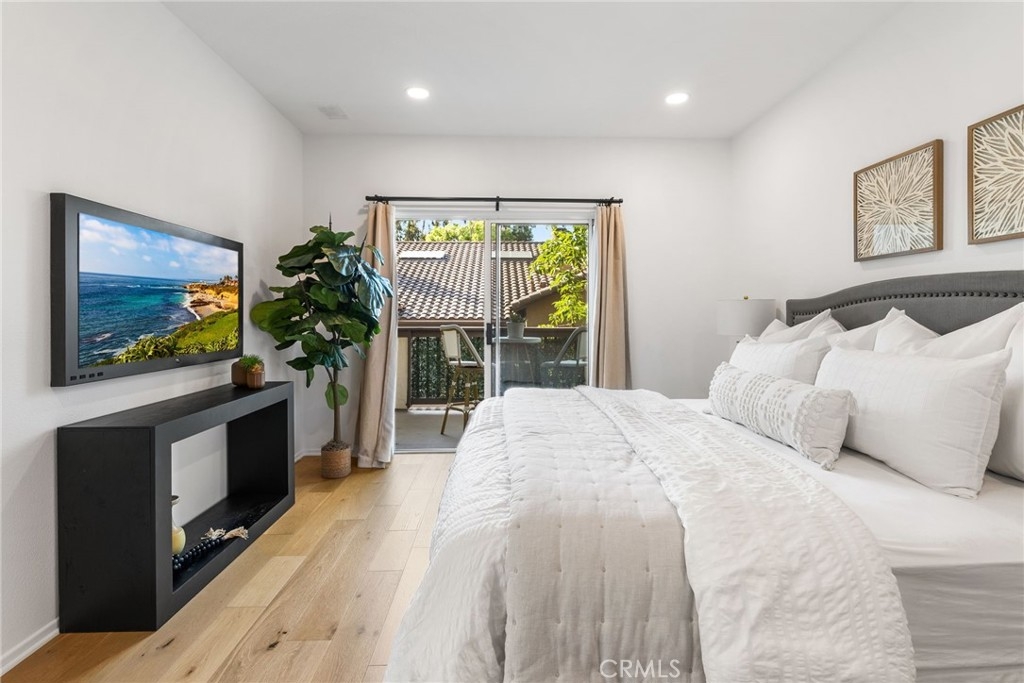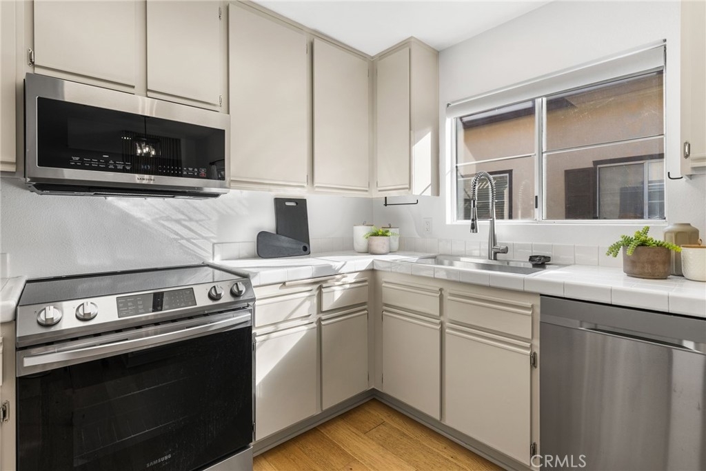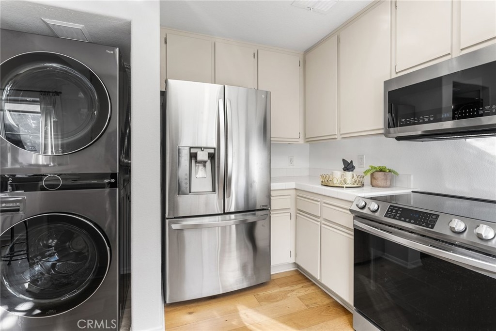 Welcome to Rancho Veracruz, the coveted golf course community! This third-level, one-bedroom residence boasts a serene location with abundant natural light and steps away from the community pool and gym. The spacious living room features a cozy fireplace, while the dining area extends seamlessly into the kitchen with a convenient breakfast bar. Upgraded throughout with engineered hardwood, updated kitchen and bathroom. The bedroom offers a walk-in closet and built-in cabinets near the bathroom provide ample storage for linens. An in unit laundry makes this property ideal. Entertaining is effortless with the open layout connecting the kitchen, living, and dining areas. Enjoy outdoor grilling on your private balcony, or take advantage of community amenities such as two sparkling pools with spas, an exercise center, and a clubhouse. Association dues cover water and trash. Unit is entitled to 2 vehicles, one is designated to the coveted one car garage and the other one can park anywhere in an uncovered space. The perfect blend of comfort and lifestyle at Rancho Veracruz. Don't miss out on this great opportunity!