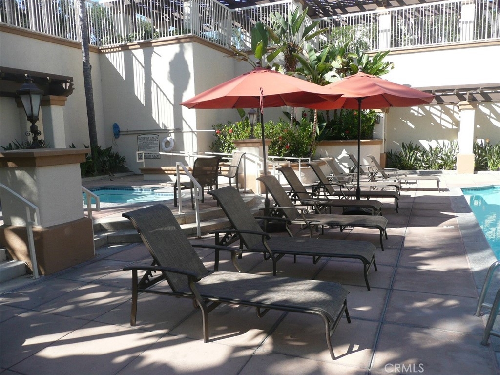 Welcome to the resort like community of Rancho Vera Cruz. This contemporary architecture is sure to make you feel like you are on vacation with amenities such as 2 pools, 2 spas, clubhouse and fitness center. Just steps away from the Tustin Ranch Golf Course, this one bedroom condo boasts a bright and airy floorplan with plenty of natural sunlight. As you walk up the stairs to your front door you are greeted by a sizeable patio deck, perfect for a table and chairs for those evening barbeques. Upon entering the unit, an oversized living room with a gas fireplace greets you. A dining area off the front room and kitchen is perfect for those intimate dinners. The kitchen includes a range, microwave and dishwasher. The stainless steel sink is positioned to look out the windows at the deck and beautiful landscaped grounds. The bathroom has been remodeled with new shower doors, a modern light fixture and beveled mirror. In the hallway you will find a laundry closet which includes a stackable washer and dryer. The large bedroom includes a ceiling fan for those nights where the central air conditioning may be too much. Plenty of room for clothes and other belongings in the large walk in closet. Close to the Market Place, restaurants, entertainment, parks, hiking trails and great freeway access. Don’t let this one get away. Call today for a showing!
