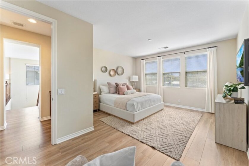 Welcome to 3229 Larkspur Street — where everyday living feels elevated. Nestled in the highly desirable Columbus Grove community, this beautifully upgraded 4 Bedroom + Loft, 3 Bathroom home offers 2,416 sq.ft. of bright, open living space designed for comfort and ease. Step inside to a dramatic two-story foyer that leads into a spacious Great Room featuring a cozy fireplace and media niche, ideal for gatherings both large and small. The chef’s kitchen is as stylish as it is functional, showcasing granite countertops, stainless steel appliances, an oversized center island, and a generous walk-in pantry. Just beyond, the adjacent patio creates a seamless indoor-outdoor connection—perfect for entertaining. The main level includes a full bedroom and bathroom with a walk-in closet, offering flexibility for guests, multigenerational living, or a private home office. Upstairs, the versatile loft provides an ideal bonus space, whether for a child's playroom, gym, workspace, or second living area. Two secondary bedrooms share a well-appointed bath with dual vanities, while the primary suite serves as a true retreat with dual closets, a soaking tub, and a separate walk-in shower. Outside, unwind in your private backyard sanctuary with no neighbors behind you, complete with a gas-plumbed fire pit and sleek hardscaping for easy entertaining or quiet evenings. An additional plus, this home excludes carpeted areas, with hardwood flooring downstairs, luxury vinyl plank upstairs, and tile in all bathrooms. Columbus Grove offers more than just a home—enjoy low HOA dues, top-rated Irvine schools, and resort-style amenities including a junior Olympic pool, spas, parks, tot lot, sport courts, and year-round community events. With quick access to John Wayne Airport, the 5 & 405 freeways, Newport Beach, and premier shopping and dining at The District, The Market Place, and South Coast Plaza, you’re truly at the center of it all.