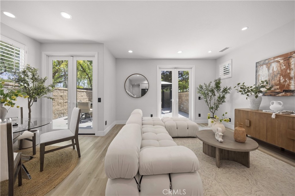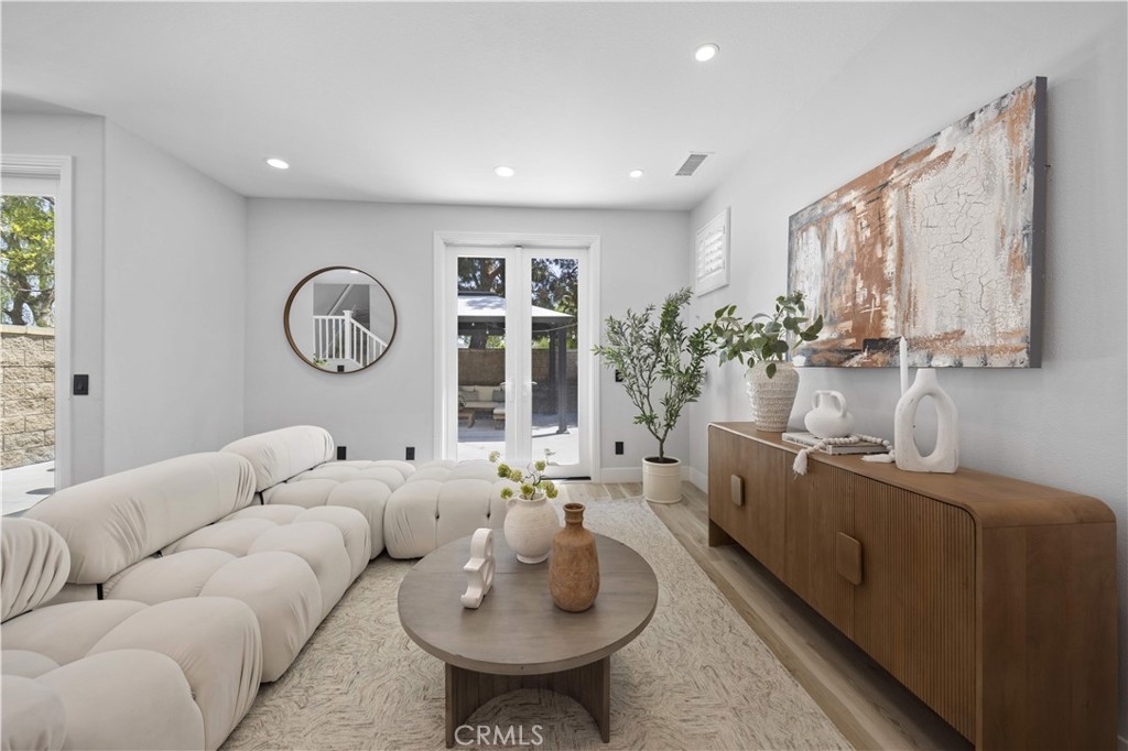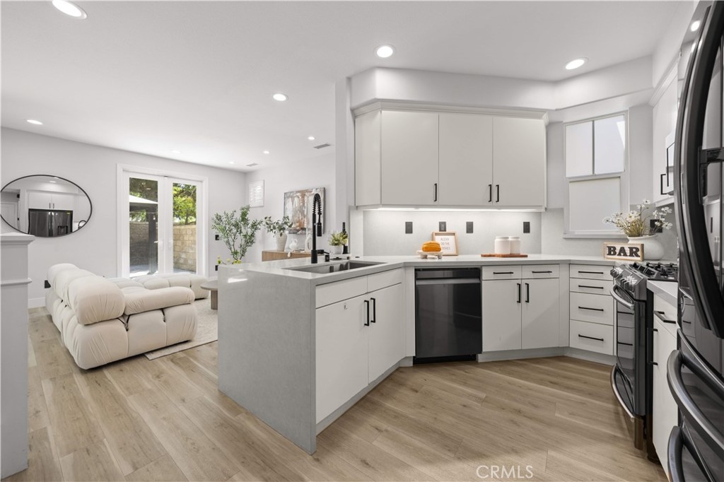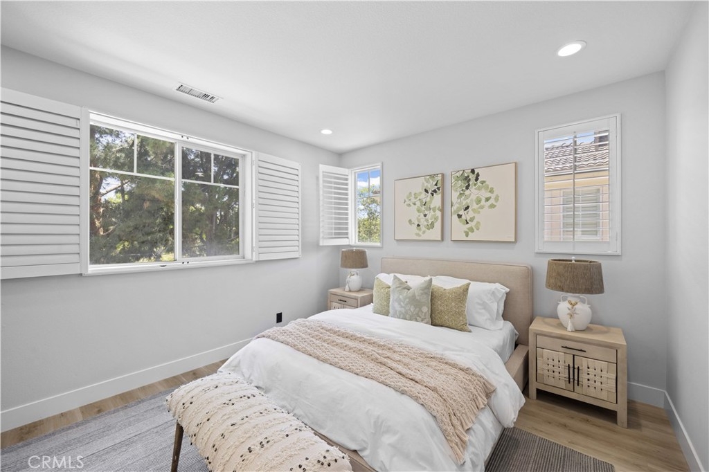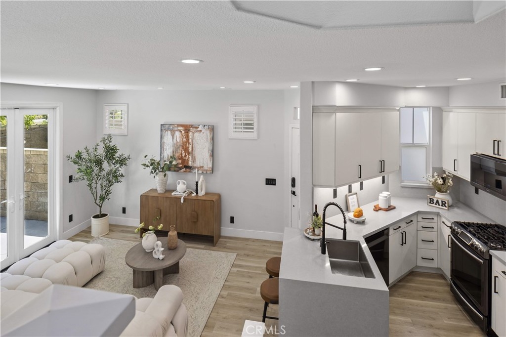 Welcome to this fully remodeled DETACHED condo with a rare oversized backyard and 2-car driveway in the highly sought-after Tustin Field community, located within the award-winning Irvine Unified School District. Situated on a private end-unit with no rear neighbors, this home offers exceptional privacy and an open, light-filled floor plan. Featuring over $120,000 in upgrades, highlights include Pergo water-resistant flooring, recessed lighting, plantation shutters, and designer finishes throughout. The modern kitchen boasts quartz countertops with waterfall edge, full backsplash, Samsung stainless steel appliances, and a walk-in pantry. Both bathrooms are fully remodeled, and the spacious primary suite offers a spa-like retreat with a freestanding tub, walk-in shower, and custom closet. The expansive backyard—an uncommon find—provides ideal space for entertaining and outdoor living, with seamless indoor-outdoor flow through dual French doors. Additional features include custom closet organizers, sound-insulated windows, and a 2-car garage with driveway parking. Enjoy community amenities including pool, park, BBQ areas, and trails, all conveniently located near Tustin Marketplace, The District, and major freeways.