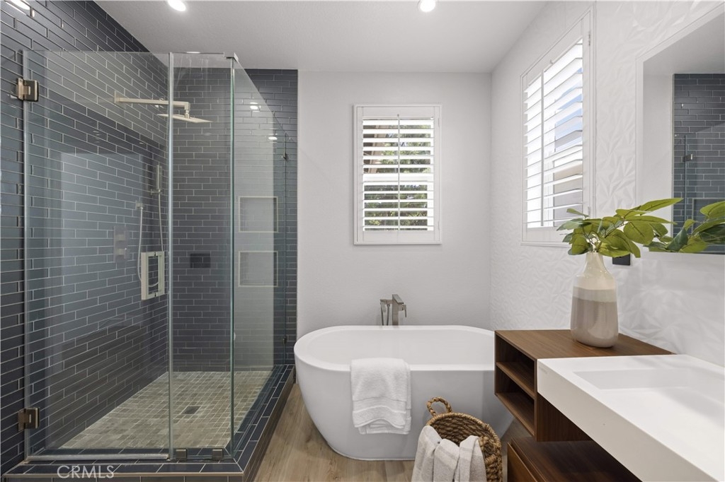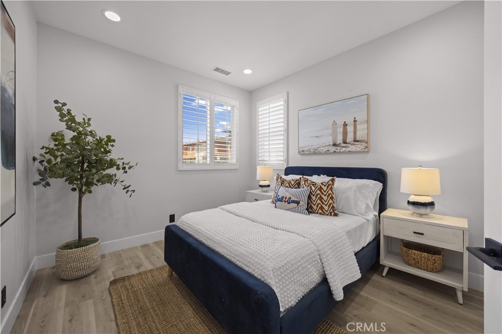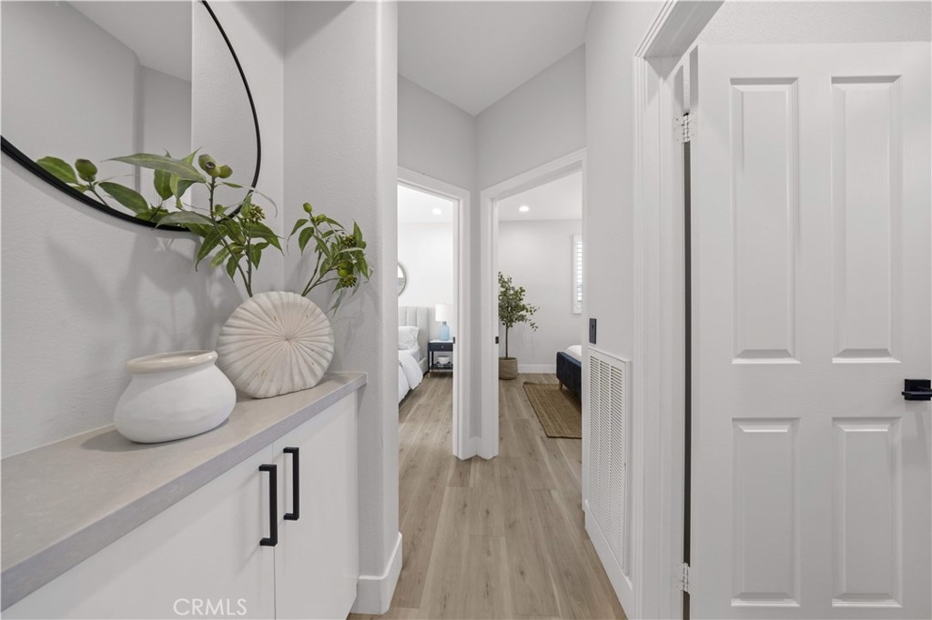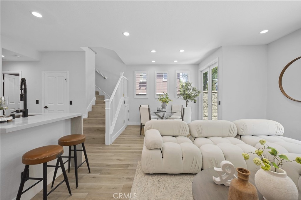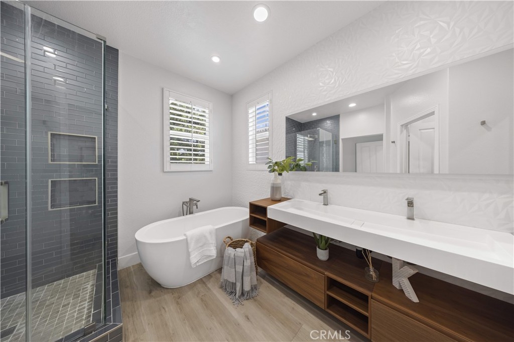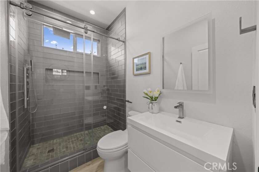 Welcome to this fully remodeled DETACHED condo with a rare oversized backyard and 2-car driveway in the highly sought-after Tustin Field community, located within the award-winning Irvine Unified School District. Situated on a private end-unit with no rear neighbors, this home offers exceptional privacy and an open, light-filled floor plan. Featuring over $120,000 in upgrades, highlights include Pergo water-resistant flooring, recessed lighting, plantation shutters, and designer finishes throughout. The modern kitchen boasts quartz countertops with waterfall edge, full backsplash, Samsung stainless steel appliances, and a walk-in pantry. Both bathrooms are fully remodeled, and the spacious primary suite offers a spa-like retreat with a freestanding tub, walk-in shower, and custom closet. The expansive backyard—an uncommon find—provides ideal space for entertaining and outdoor living, with seamless indoor-outdoor flow through dual French doors. Additional features include custom closet organizers, sound-insulated windows, and a 2-car garage with driveway parking. Enjoy community amenities including pool, park, BBQ areas, and trails, all conveniently located near Tustin Marketplace, The District, and major freeways.