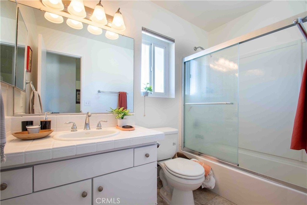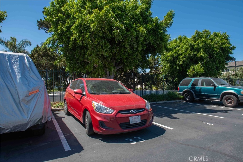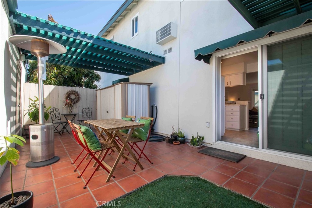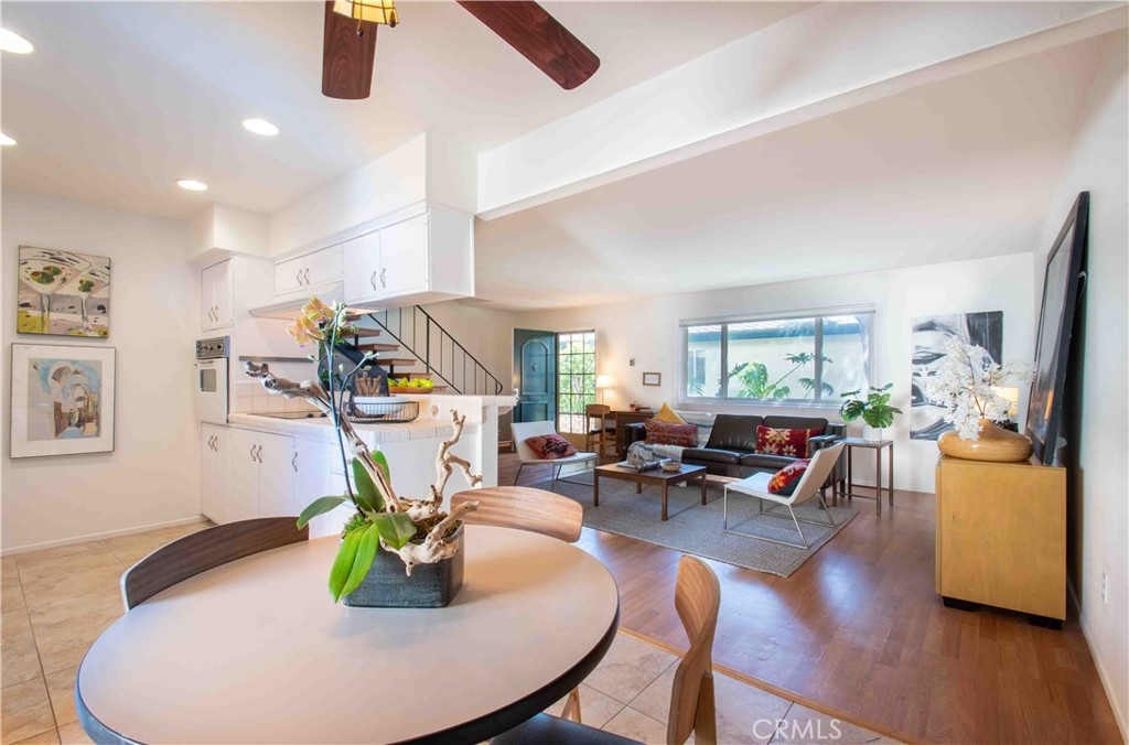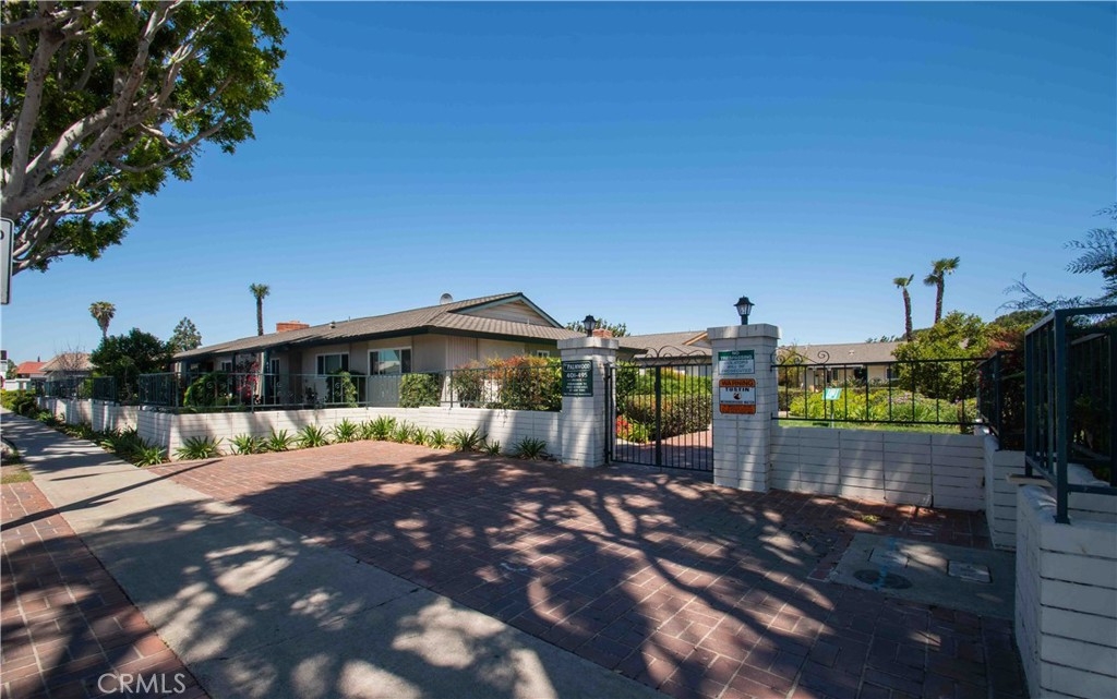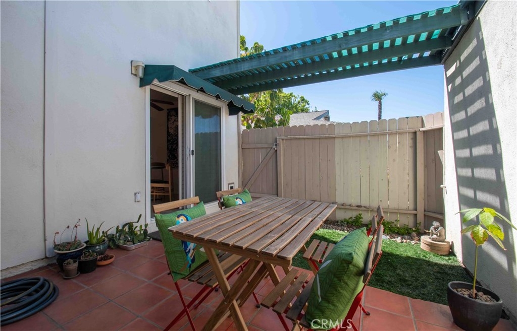 Quiet, corner unit condo in the beautiful, gated community of Palmwood Gardens! True to its name, this 98 unit complex has small groups of condos surrounded by lush landscaping, meandering paths, and beautiful swimming pools. This unit is one of twelve that have a direct access garage and a private courtyard between the garage and home. Enter into a spacious and bright living room with bar seating in front of the open kitchen. The attached dining area has a slider that leads to the tiled courtyard with outdoor seating and garden. Convenient powder room on the first floor and enclosed laundry in the courtyard. Upstairs, there are two large bedrooms with treetop views, including one with a walk-in closet, and a full bathroom. Residents are attracted to Palmwood Gardens due to a combination of the fantastic amenities, the quiet neighborhood, and lovely views. Central location in Tustin, all within a short distance to Columbus Tustin Park, freeways, and Old Town Tustin with numerous hot spots for dining and shopping.