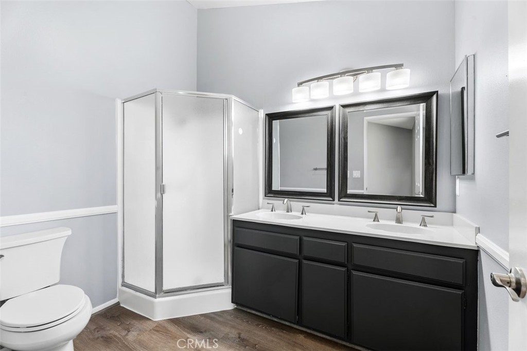 Beautiful 1,451 sq. ft. END-UNIT in the boutique 26-home Tustin Commons community, just a short walk to Old Town Tustin. This spacious 2 bedroom, 2.5 bath residence offers peaceful hillside, greenbelt, and pool views, plus an open living area with a brick fireplace, balcony, and bright kitchen with breakfast bar. Upstairs features dual master suites, each with its own ensuite bath. The primary includes vaulted ceilings, a private balcony, dual closets, and an updated bath with dual sinks and walk-in shower. The secondary suite has a walk-in closet and its own private bath. A major highlight is the oversized attached two-car garage with a huge approx. 170 sq. ft. storage/flex space—ideal for a home gym, studio, workshop, or organized storage. Additional features include indoor laundry and abundant natural light throughout. Tustin Commons offers a pool, spa, BBQ area, and lush landscaped grounds—all tucked in a quiet, private setting close to Pine Tree Park, dining, shops, and major freeways.