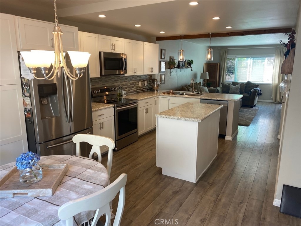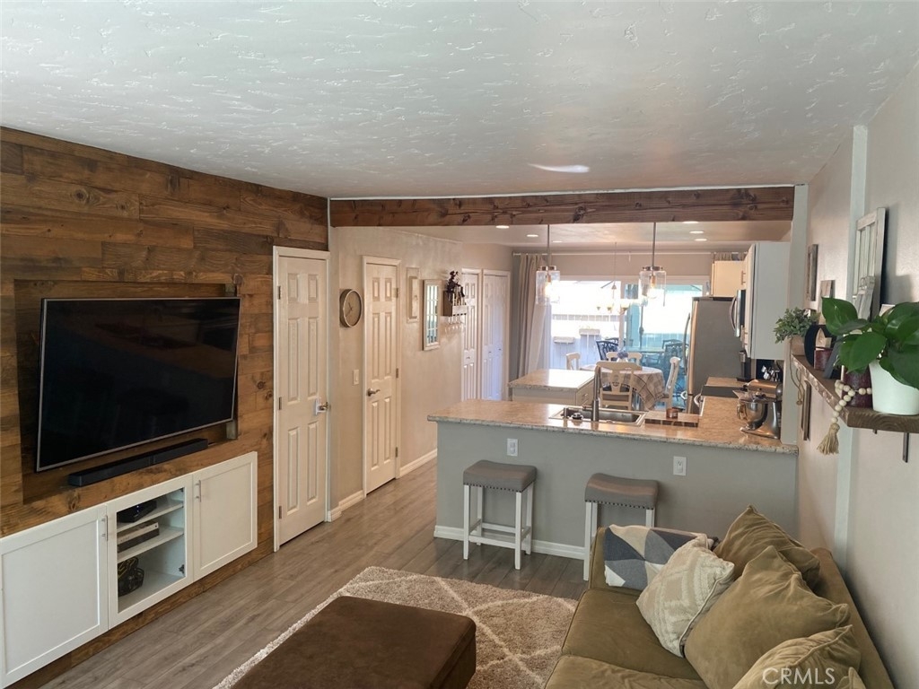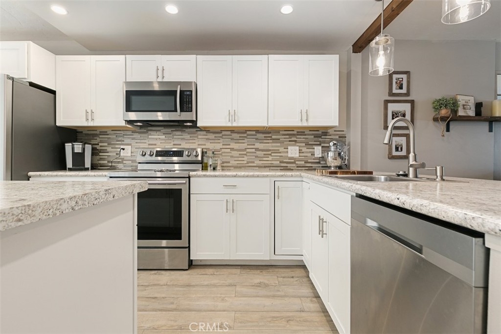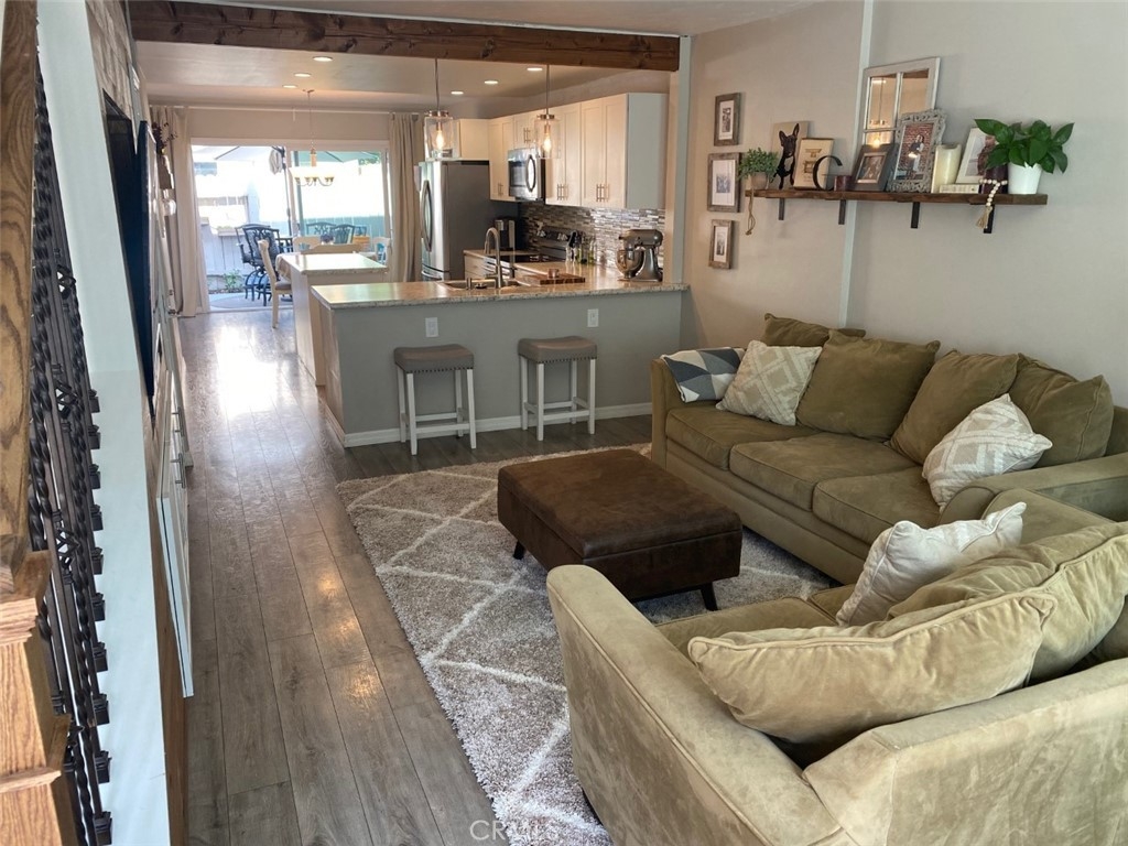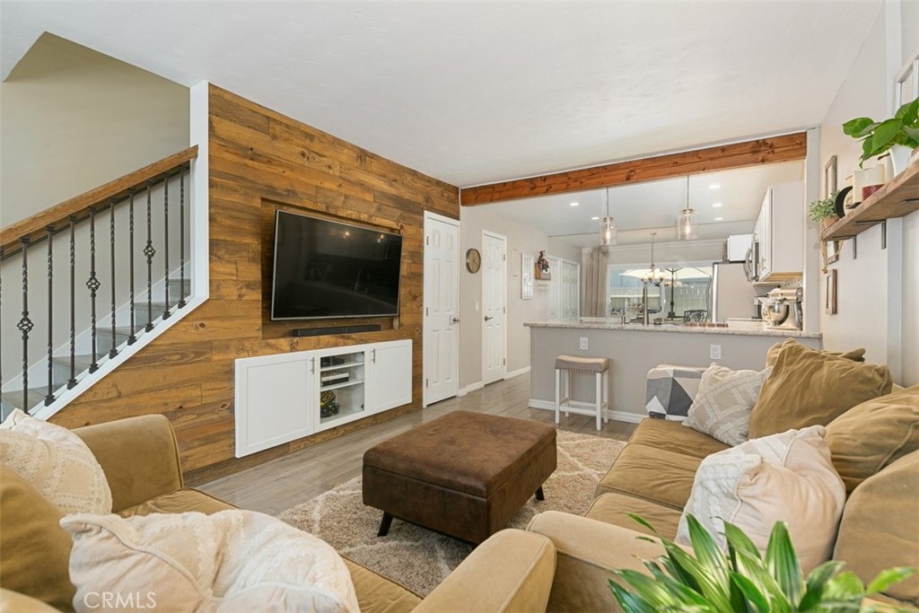 Showing by appointment only. This Truly AMAZING fully remodeled turnkey 2 bedroom 1 ½ Bath ENDUNIT townhouse is located in the gated community of Tustin Acres. No detail has been spared. The home features a complete open floor plan. The kitchen has been remodeled recently with new cabinets, counters, recessed LED lighting AND an island has been added. The wall between the kitchen and living room has been opened up to add a breakfast bar and beautiful lighting completing the open concept. There is a dining area, a panty and laundry closet in the kitchen area. All new dual pane energy efficient windows and a slider to the patio have been added. A new water heater, newer stove and dishwasher have also been installed. The area under the stairs has been closed off and accented with beautiful wood trim which allows for an inset television as well as a full storage closet behind. The designer laminate floor is throughout the home except in the bathrooms. Upstairs you will find 2 great sized bedrooms and a remodeled bathroom with a custom shower-tub, vanity and storage closet. The townhome has 2 assigned covered parking spaces in the gated parking structure steps for the front door. The HOA features 3 pools, 2 spas and a clubhouse for hosting events AND they cover water and trash. The complex is located close to Old Town Tustin and near the 5 and 55 freeway!!!!